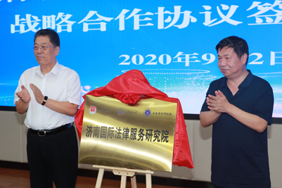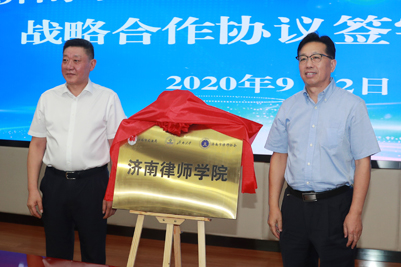 学校合作发展处处长卢旺,市司法局党委委员、政治部主任石颖分别代表beat365中文登录入口和济南市司法局签署战略合作协议。济南市副市长吴德生,beat365中文登录入口党委副书记王玉华共同为“济南律师学院”揭牌。省司法厅党委书记、厅长王玉君,beat365中文登录入口党委书记徐景颜共同为“济南国际法律服务研究院”揭牌。