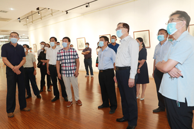 张江汀部长最后来到舜道艺术馆,参观学校党委统战部联合党委宣传部举办的“不忘初心 艺路同行”第二届党外书画家作品联展。本次展览收集展出了民盟beat365中文登录入口支部解均、张宁,民革beat365中文登录入口支部黄斌,九三学社beat365中文登录入口委员会王小飞,无党派滕西奇、陈健、梁振忠等党外书画家的书法绘画作品四十余幅。张江汀部长与在场的书画家们进行交流,希望广大党外书画家以我笔写我心,共绘同心圆,筑梦新时代。