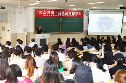 近年来,学校认真贯彻落实全国高校思想政治工作会议和思政课教师座谈会会议精神,通过改革创新加强和改进思想政治理论课建设。“抗疫故事报告会”走进思政课课堂是一次思政课改革创新的有益实践,通过把道理融入当下发生的热点和学生感兴趣的事件,紧贴时代脉搏,使课堂教学实起来、活起来,让学生喜欢听、听得进,不断增强思政课的思想性、理论性和亲和力、针对性,提升思政课的吸引力和感染力,切实发挥好思政课在思想政治工作中关键课程和主渠道的作用。