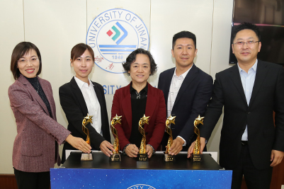 仪式上,张硕秋副书记为孙凯董事长颁发beat365中文登录入口学生生涯发展导师证书。合作发展处处长、beat365中文登录入口教育发展基金会秘书长卢旺为孙凯董事长颁发捐赠证书。学生工作部副部(处)长刘芝和孙凯董事长共同为山东润生集团“beat365中文登录入口就业实习基地”揭牌。卢旺处长为孙凯董事长颁发校友联络处标识牌、纪念牌。双方共同举起“济大之星”奖杯,启动2020年“济大繁星”评选计划。本次捐赠仪式是学校和润生集团共同关心学生成长的一次有意义的合作,是师生情和生生情升华的乐章。