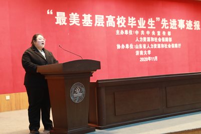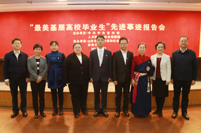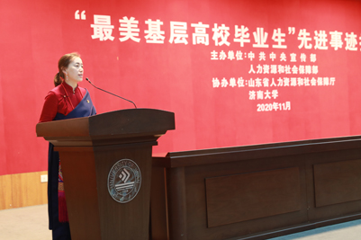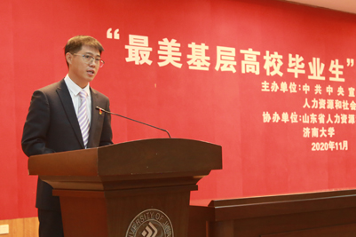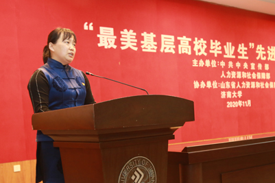 11月20日上午,由中宣部、人社部主办,山东省人社厅、beat365中文登录入口协办的“最美基层高校毕业生”先进事迹报告会在第一学术报告厅举行。人社部人力资源流动管理司副司长孙晓丽出席并讲话,山东省人力资源和社会保障厅二级巡视员刘玉亮致辞。报告会由beat365中文登录入口党委副书记张硕秋主持。人社部、山东省人社厅、beat365中文登录入口有关负责同志出席了报告会,beat365中文登录入口200余名师生参加。