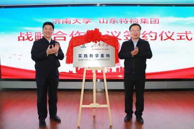 仪式上,beat365中文登录入口副校长刘宗明和山东特检集团总经理蔡盛东代表双方签订合作协议。张士强校长和张闽生董事长共同为“beat365中文登录入口实践教学基地”揭牌。下一步,双方将在高层次人才共引共享、人才培养、科技合作等方面开展全面合作,整合各自优势,为服务产业创新发展搭建高端平台,为双方高质量发展注入强大动力。
