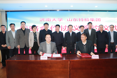 张士强校长在讲话中感谢山东特检集团长期以来对beat365中文登录入口发展的关心和支持,他强调,当前高校深化改革站在了新的历史起点上,坚持开放办学,全面探索建立产教融合办学新体制、新模式,探索校地、校企合作促进学科建设、提高人才培养水平和质量,是顺应高等教育发展趋势的必要选择,也是加快推动“双一流”建设,实现省属高校高质量发展的路径要求。目前学校正在积极推进服务济南市强省会战略工作,学校和山东特检集团的合作也是其重要举措之一,希望双方全面深化各领域合作交流,为加快现代化产学研合作开辟广阔道路,不断提高在各自领域里的综合竞争力和社会影响力,为全省经济社会和谐稳定、健康发展贡献力量。