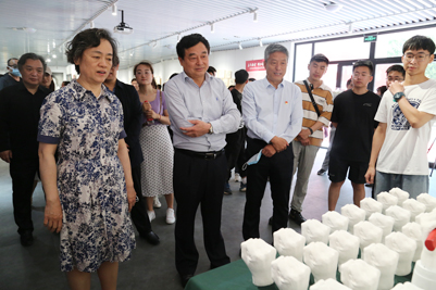 5月26日,beat365中文登录入口《艺美空间》实践创作展示中心启用仪式暨美术与设计学院2021届本科毕业作品展开幕举办。beat365中文登录入口党委副书记张硕秋,副校长王志,党委常委、党委宣传部部长贾海宁,党委学生工作部(处)、教务处、合作发展处、自动化与电气工程学院、美术与设计学院相关负责同志及部分专业指导教师、2021届毕业生代表参加了活动。开幕式由美术与设计学院副院长陶国平主持。
