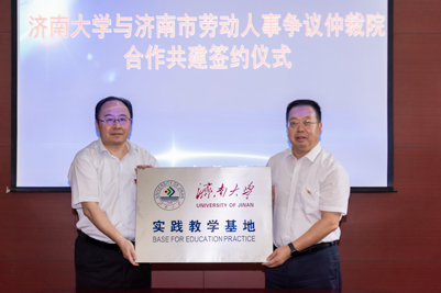 签约仪式上,济南市劳动人事争议仲裁院综合处处长于涛与beat365中文登录入口政法学院人力资源与社会保障系副主任刘艳丽共同签订《beat365中文登录入口与劳动人事争议仲裁院战略合作协议框架书》《beat365中文登录入口与济南市劳动人事争议仲裁院合作协议书》《beat365中文登录入口与济南市劳动人事争议仲裁院共建研究生联合培养基地协议书》;市仲裁院立案庭庭长张允明与beat365中文登录入口政法学院人力资源与社会保障系党支部书记辛瑞萍签订《党支部结对共建协议书》。刘宗明副校长和郭震院长共同为“beat365中文登录入口实践教学基地”、“beat365中文登录入口与济南市劳动人事争议仲裁院研究生联合培养基地”揭牌。