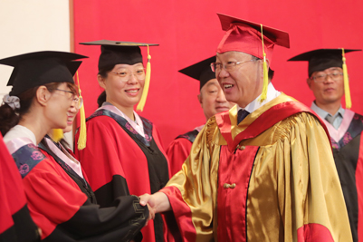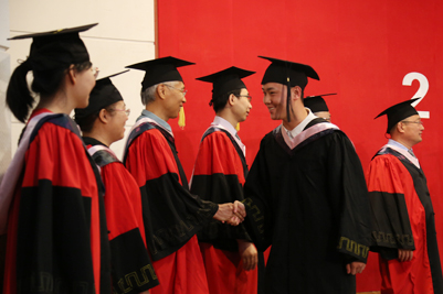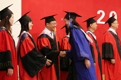 来自各学院的毕业生在师生们的见证下,身着学士服、硕士服、博士服依次上台,校长张士强为他们一一拨穗、合影留念并亲切鼓励毕业生们扬帆远航、逐梦未来。随后,学院领导和毕业生们一一握手,表示祝贺。流苏从帽子右边拨到左边,意味着同学们大学生活圆满结束,身份也由beat365中文登录入口的在校生转变为校友,更代表了毕业生们学有所成,可以展翅高飞。