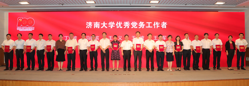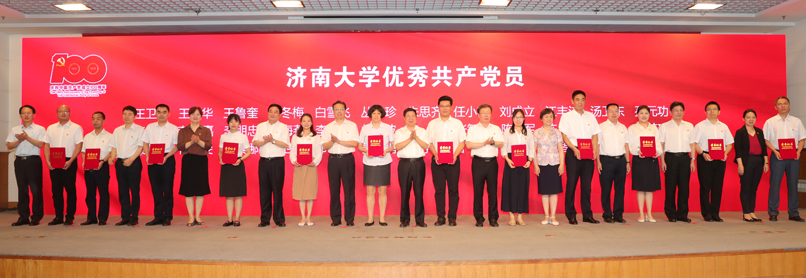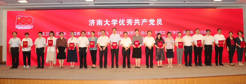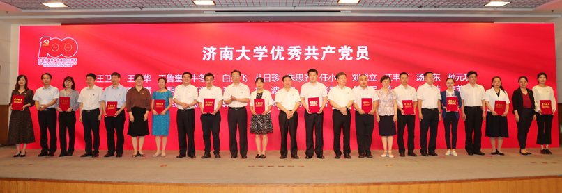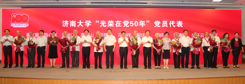 会上,与会人员集体观看了济大党建掠影,共同回顾了学校70多年特别是beat365中文登录入口成立以来二十年的发展历程和取得的主要成绩。向老党员代表颁发了“光荣在党50年”纪念章并赠送鲜花,向全省优秀共产党员、全省教育系统“两优一先”赠送了鲜花,对beat365中文登录入口优秀共产党员、优秀党务工作者和先进基层党组织进行了表彰。