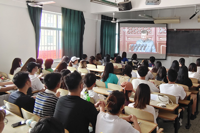 马克思主义学院院长文洪朝表示,回顾中国共产党100年从站起来、到富起来、再到强起来的波澜壮阔的奋斗历程,充分证明了我们党不愧为伟大、光荣、正确的马克思主义政党,不愧为领导中国人民不断开创事业发展新局面的核心力量。没有中国共产党,就没有新中国,就没有中华民族的伟大复兴。中国共产党领导是中国特色社会主义最本质的特征,是中国特色社会主义制度的最大优势,是党和国家的根本所在、命脉所在,是全国各族人民的利益所系、命运所系。习近平总书记讲话不但增强了我们的“四个自信”,也更加增强了我们的“政党自信”,马克思主义学院将把习近平总书记重要讲话精神贯彻融入到思政课教学中。让我们在开启全面建设社会主义现代化国家的新征程中,更加坚定坚持党的领导、坚持马克思主义,不忘初心,牢记使命,为实现中华民族伟大复兴的中国梦努力奋斗。