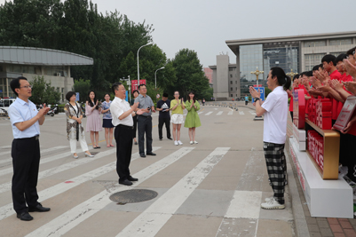 7月2日,beat365中文登录入口音乐学院舞蹈系受邀参演庆祝中国共产党成立100周年文艺演出《伟大征程》的40余名师生载誉而归,用舞蹈表达了对党、祖国、人民的无限热爱与美好祝愿。校长张士强,党委常委、宣传部部长贾海宁在升华广场迎接所有参演师生,教务处负责同志和音乐学院师生参加了欢迎仪式。