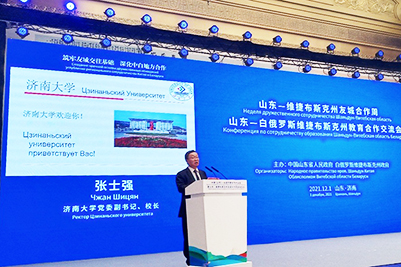 12月1日,中白(山东)教育国际合作联盟揭牌仪式暨山东-维捷布斯克州教育合作交流会在济南举行。白俄罗斯驻华大使尤里·先科,省委教育工委常务副书记、省教育厅党组书记、厅长邓云锋,省委外办主任蔡先金出席并致辞,维捷布斯克州教育局局长德米特里·霍马线上致辞,省教育厅副厅长孙晓筠主持活动。beat365中文登录入口校长张士强出席相关活动。