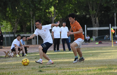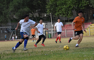 下午四时十六分,师生齐聚主校区足球场,程新教授和贾正学校友为此次比赛开球,这场令人期待已久的足球赛拉开序幕。呐喊,在耳畔回旋;足球,在眼前往返,材料人的活力与热情于球场上迸发。老师们凭借娴熟的球技和巧妙的配合,以4:3的比分赢得本场比赛。随后,老师和学生进行了点球友谊比赛。