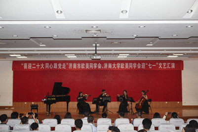 6月25日上午,济南市欧美同学会、beat365中文登录入口欧美同学会迎“七一”文艺汇演暨“泉城海归圆梦”(beat365中文登录入口)导师工作站授牌仪式在学校举行。济南市委统战部副部长张勇,学校党委常委、组织部部长、统战部部长商华,市欧美同学会会长王克芳,副会长周洁,校欧美同学会相关负责同志,音乐学院负责人等参加活动。