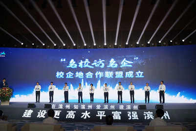 启动仪式上,学校与滨州市签订高校引才工作站合作协议并授牌,beat365化学化工学院周春华教授作为滨州市高层次人才参加颁奖,杨景波与有关高校领导、企业家共同启动“名校访名企”校企地合作联盟。