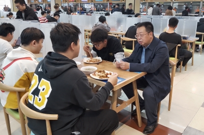 刘宗明先后来到舜耕校区第六、第七食堂、主校区第三食堂、南院第九食堂等,详细查看了食堂的从业人员核酸检测、健康状况监测、消毒消杀等常态化疫情防控措施落实情况,深入后厨、操作间、仓库等实际查看了水、电、天然气及消防设施情况,现场查看并深入学生了解饭菜质量与品类、价格、食品留样等情况。中午,刘宗明与正在南院九食堂进餐的几名学生一起用餐,详细询问他们的学习、生活等方面情况,听取他们对于教育教学、校园文化活动、后勤服务保障等方面的意见建议,勉励他们珍惜好青春好时光,勤学修德明辨笃行,争做德智体美劳全面发展、全面进步的新时代大学生。
