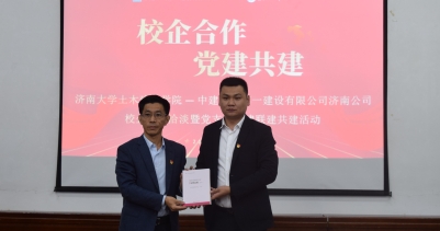 10月26日,土木建筑学院与中建八局第一建设有限公司济南公司在第八教学楼举行校企合作洽谈会暨党支部党建联建共建活动。学校党委常委、副校长李强出席活动,中建八局一公司人力资源总监马姗姗,中建八局一公司济南公司执行总经理、党委副书记、工会主席、土木建筑学院 2009 届校友谢新坡,副总经理、土木建筑学院 2012 届校友肖劲松,人力资源部经理初新阳,文庄租赁住房项目党支部书记、项目经理辛建鑫,党群工作部副部长、综合办公室副主任张藤栊,文庄租赁住房项目党支部党员、土木建筑学院负责人、土木建筑学院市政系师生联合党支部和研究生党支部党员代表共同参加活动。活动由学院党委副书记、副院长朱小燕主持。