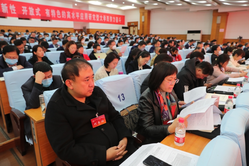 会上,学校党委书记刘春华致开幕辞;山东省教育工会副主席王辉讲话;校长刘宗明作了《立足新起点 勇担新使命 展现新作为 努力开创高水平大学建设新局面》的学校工作报告。大会审议并通过了预选办法及预选总监票人、监票人和总计票人、计票人名单;通过了教代会执行委员会委员预选候选人建议名单。