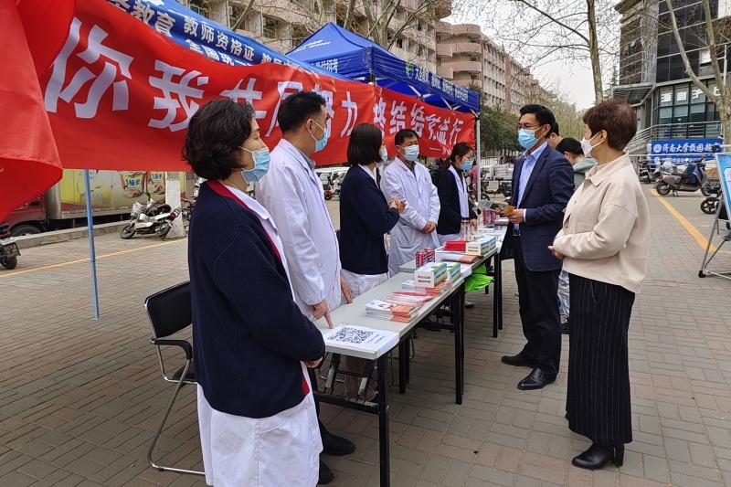 3月23日,校医院“健康先行”志愿服务队联合山东省公共卫生临床中心、市疾控、区疾控等单位在中海广场开展了结核病防治宣传义诊活动,为社区公众宣传肺结核防治知识,为到场的居民进行义诊、免费测量血压、发放健康知识手册等,向公众普及结核病知识。