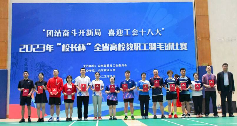 5月8日至12日,山东省教育工会主办的2023年“校长杯”全省高校教职工羽毛球比赛在山东农业大学体育馆举行,此次比赛共有来自全省教育系统75支代表队700多人参赛。beat365党委副书记查玉喜,副校长王霞代表学校组队参加比赛。