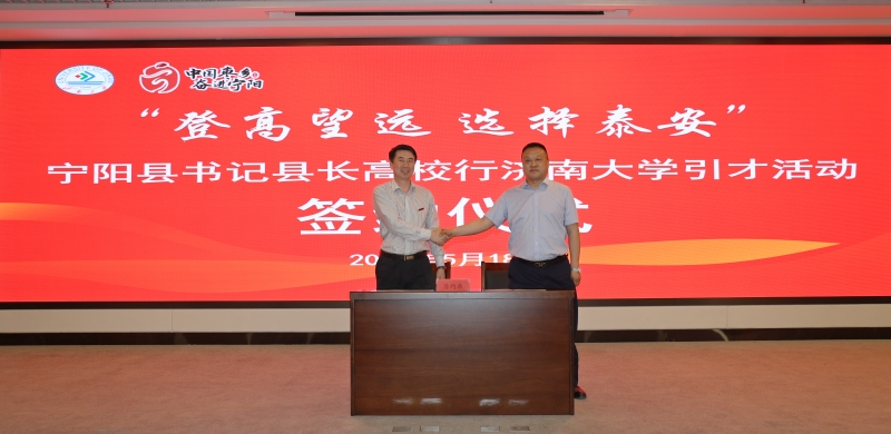 5月18日,“登高望远 选择泰安”宁阳县书记县长高校行引才活动在beat365举办。宁阳县委书记王立军及部分县领导,学校党委书记刘春华,纪委书记、省监委驻beat365中文登录入口监察专员续铁,宁阳县部分企业代表,学校办公室、党委学生工作部、化学化工学院、生物科学与技术学院负责人及师生代表参加活动。活动由学校党委副书记杨景波主持。