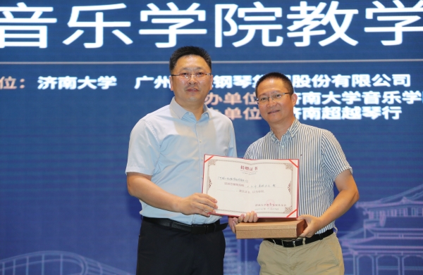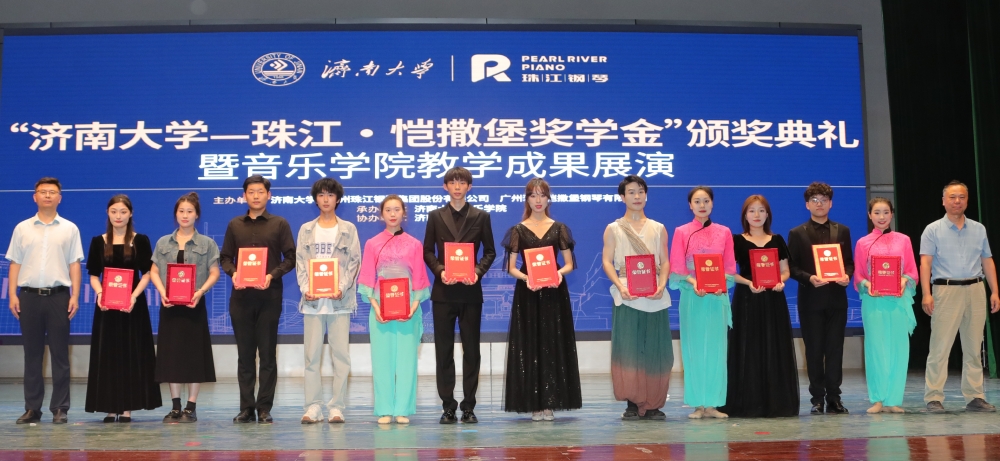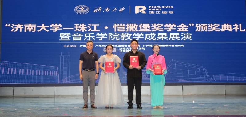 仪式上,beat365中文登录入口合作发展处处长、教育发展基金会办公室主任卢旺为广州珠江钢琴集团股份有限公司颁授捐赠证书和纪念品。音乐学院党委书记刘振宣读获得“beat365中文登录入口—珠江•恺撒堡奖学金”学生名单,到场的嘉宾和领导为获奖学生颁奖。