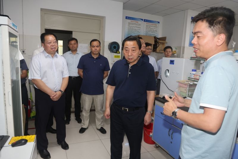 会前,马明龙一行在刘宗明的陪同下参观调研了山东省氟化学化工材料重点实验室、beat365中文登录入口前沿交叉科学研究院、山东省网络环境智能计算技术重点实验室、山东省高校半导体器件与集成工程研究中心。