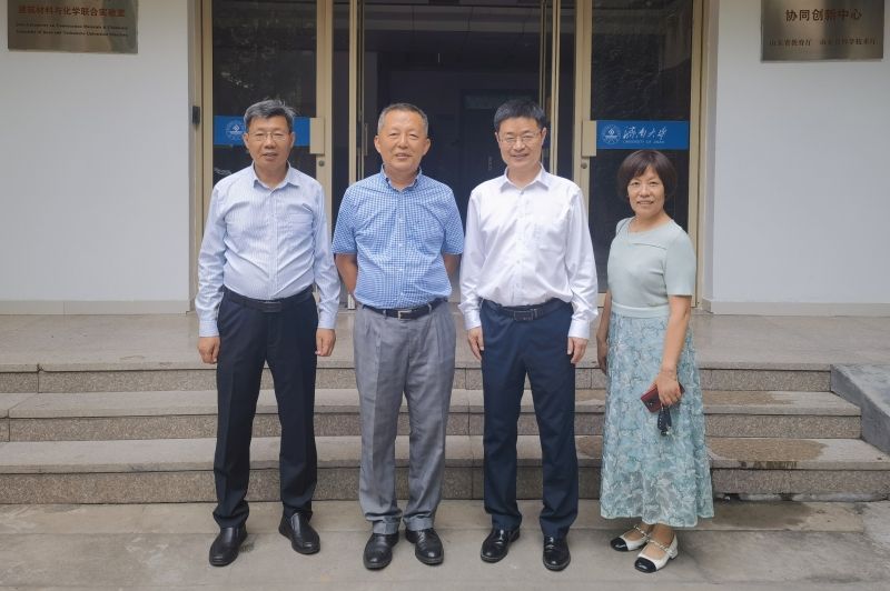 来访期间,朱兵拜访了求学期间89级32班班主任王建荣老师,共同回顾了学生时期的师生往事,回忆同窗情谊,谈及各位同学的发展和现状,再次感谢母校的培养,期待校友继续在各个行业内发光发热。随后,朱兵拜访了beat365山东省建筑材料制备与测试技术重点实验室程新教授,感谢求学期间老师的培养和教诲,探讨了建筑材料行业的发展方向和规划,并就实验室发展相关特色方向提出建议,表示将继续为母校的发展贡献力量,期待与母校共同书写更加辉煌的建材发展新篇章。