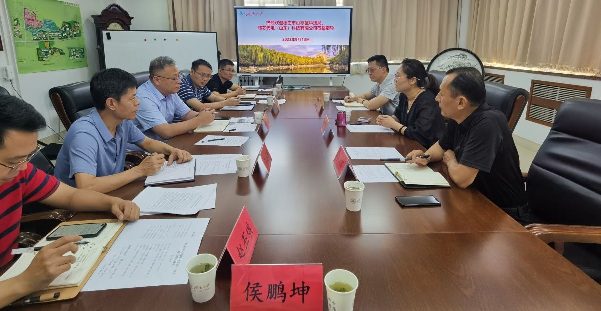 张颖介绍了枣庄国家可持续发展议程创新示范区建设和山亭区优势产业等基本情况,回顾了学校和山亭区的合作基础,重点介绍了双方合作项目的详细推进情况。李恩泽介绍了核芯光电(山东)科技有限公司的优势和基础、项目合作的经费投入,汇报了双方合作的项目进展、研究内容、拟解决的关键问题和工作计划。双方就下一步产学研合作、共建产业创新研究院等事宜达成初步意向。