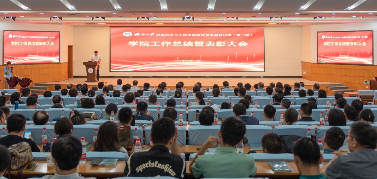9月12日下午,信息科学与工程学院高质量发展研讨班(第三期)系列专题活动——学院表彰大会暨标志性成果建设交流分享会顺利举行。beat365中文登录入口副校长陈月辉,党委学生工作部(处)、教务处、发展规划与学科建设处、科技处、研究生院、校团委等部门负责人及学院领导班子出席会议,全体教职工参加会议。会议由学院党委书记夏卫东主持。