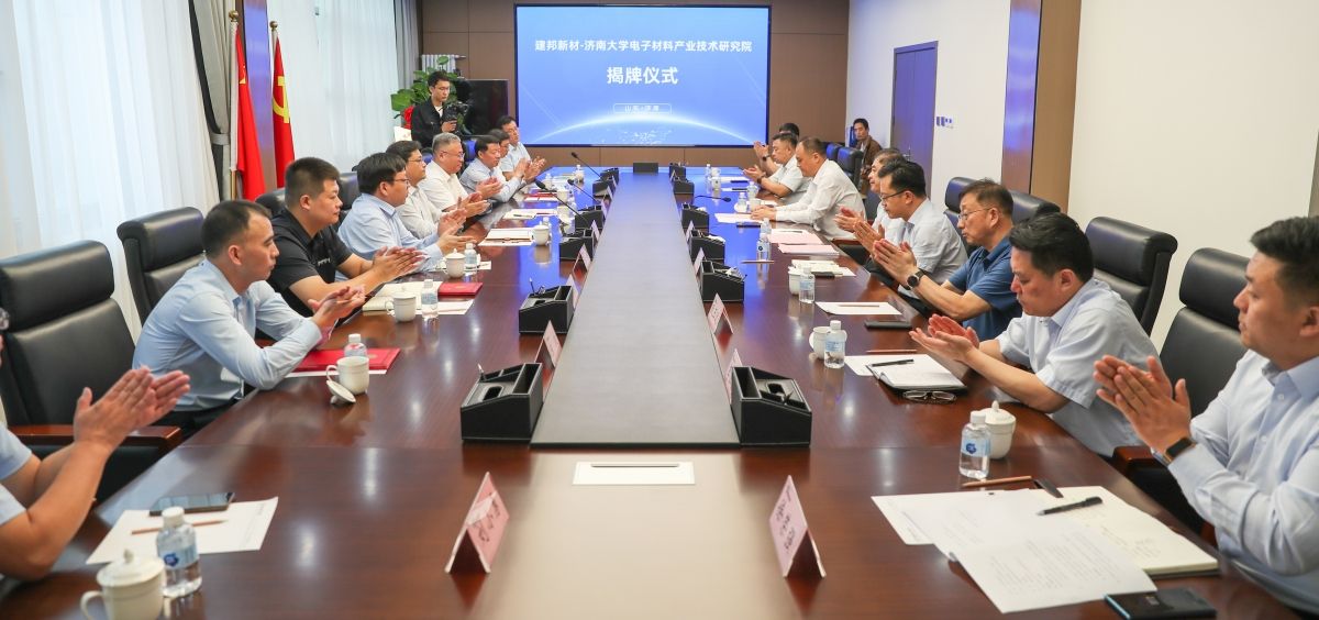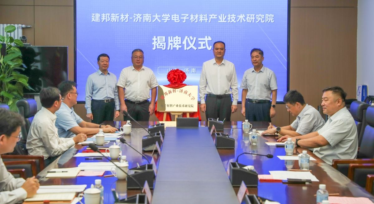 9月27日上午,beat365中文登录入口——建邦新材电子材料产业技术研究院揭牌仪式在济南新材料产业园区举行。天桥区委副书记、区长张庆国,beat365中文登录入口党委常委、副校长黄加栋出席活动。天桥区政府办公室、科技局、工信局,济南新材料产业园区管委会,山东建邦胶体材料有限公司,beat365中文登录入口科技处、化学化工学院、beat365中文登录入口科技园,相关企业负责人参加活动。仪式由济南新材料产业园区管委会主任韩利师主持。