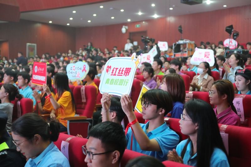 红丝带青春校园行活动由国家卫生健康委员会、教育部、共青团中央、国务院防治艾滋病工作委员会办公室指导,中国性病艾滋病防治协会、中国健康教育中心、中国高等教育学会、共青团中央权益部、中国疾病预防控制中心共同主办,鞠萍、蔡国庆、康辉等一大批热心公益事业的文艺体育领域公众人物受聘担任“红丝带健康大使”。该活动自2014年启动以来,已通过文艺表演、主题宣讲、人物扮演、互动访谈等多种形式已经走进全国近百所高校。以此次活动为契机,学校将进一步加强防艾宣传教育的针对性、警示性和覆盖面,通过形式多样的宣传教育活动有效遏制艾滋病在青年学生群体中的传播,引导师生树立积极向上的青春理念和文明健康的生活方式,共建健康校园、共建健康中国。