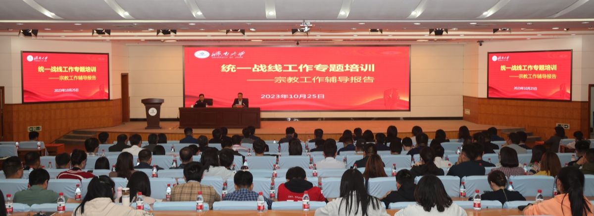 为深入学习贯彻习近平总书记关于做好新时代党的统一战线工作的重要思想、关于加强和改进民族工作的重要思想、关于宗教工作的重要论述和上级有关文件精神,不断提高学校党员干部做好宗教工作的能力和水平,10月25日,学校统战工作专题培训——宗教工作辅导报告会在第一报告厅举行。报告会邀请省委统战部一级调研员王凤全作专题辅导报告。省教育厅(省委教育工委)学校统战处处长徐文元出席报告会,学校党委常委、统战部部长徐庆国主持报告会,学校统战工作领导小组成员、全体学工人员和统战部全体工作人员参加了专题培训。