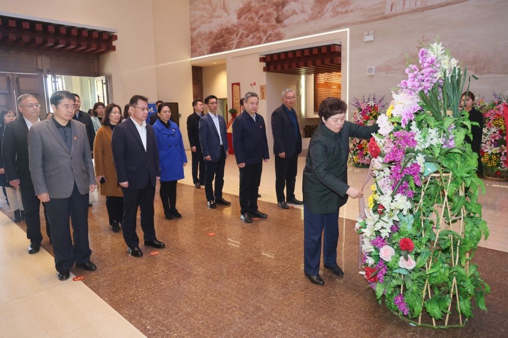 在孔繁森同志纪念馆大厅,学校党委理论学习中心组向孔繁森同志塑像敬献花篮,深切缅怀他的感人事迹,感悟他的崇高精神。