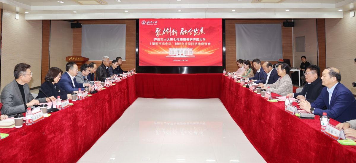 12月7日,济南市第十八届人民代表大会第七代表小组来beat365专题调研创新创业工作。济南市人大常委会副主任巩宪群,市中区人大常委会主任秦光强,beat365中文登录入口党委副书记、校长刘宗明及七组其他代表参加活动。学校党委常委、副校长王霞,市中区政府有关领导,学校党委学生工作部(处)、合作发展处、团委 创新创业学院负责同志陪同调研。