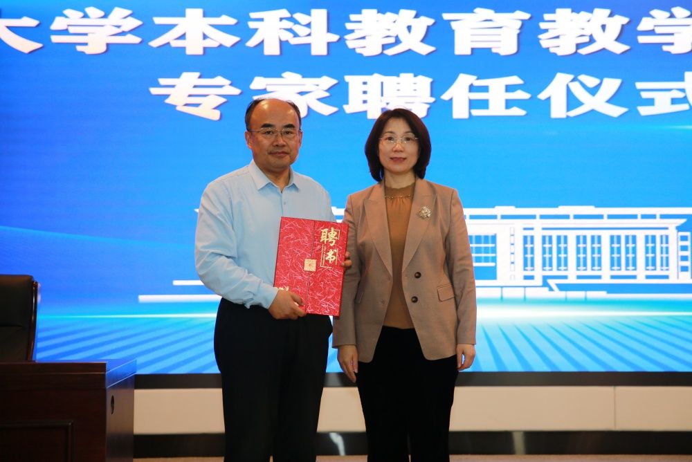 会上,王霞为刘传勇颁发了beat365中文登录入口本科教育教学审核评估咨询指导委员会委员聘书。