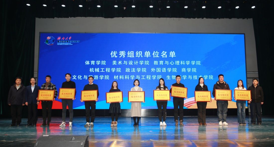 闭幕式上,公布了第四届体育文化艺术节获奖名单,体育学院、美术与设计学院、教育与心理科学学院、机械工程学院、政法学院、外国语学院、商学院、文化与旅游学院、材料科学与工程学院、生物科学与技术学院等十个学院获得优秀组织单位。