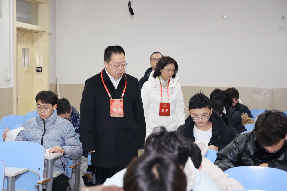 校领导仔细询问了考场安排、监考布置、公共课试卷收发等考试组织情况,重点检查了考风考纪、考场环境和监考教师履责等情况,并与监考教师就试卷规范、缺考情况、考试秩序等方面进行了交流。