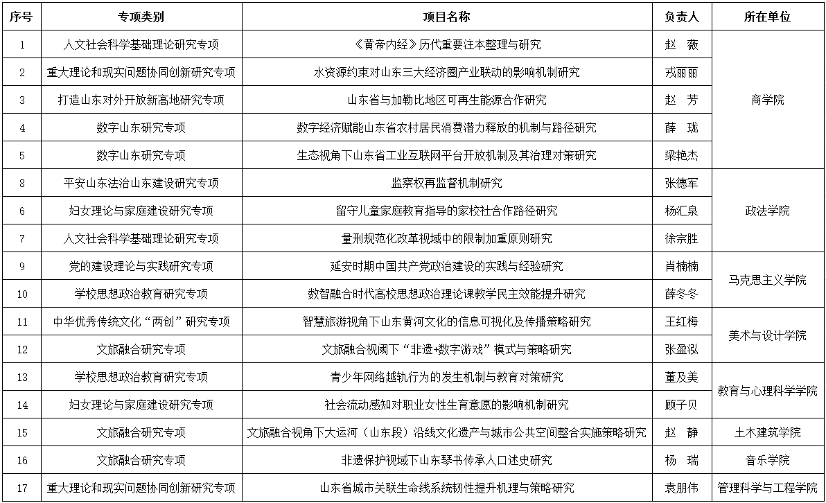 近日,2023年度山东省社科规划研究专项评审结果正式公布,beat365申报的17项课题获得立项,立项数量排名省属高校第2位。