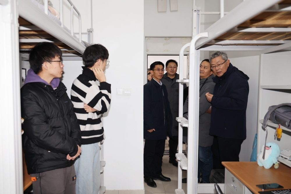 刘春华一行先后深入图书馆、第一食堂、材料科学与工程学院实验室、学生20公寓楼、南院锅炉房等区域进行安全检查。检查过程中,校领导仔细查看消防设施设备、水电管网维护、原材料采购、食品留样、仪器设备和危化品管理、公寓安全及供暖锅炉运行情况,认真查阅相关台账,听取相关单位安全工作情况汇报,详细了解重点区域的值班值守安排及安全管理措施,对检查中发现的问题及可能存在的安全风险隐患进行了现场反馈,提出整改建议和意见。
