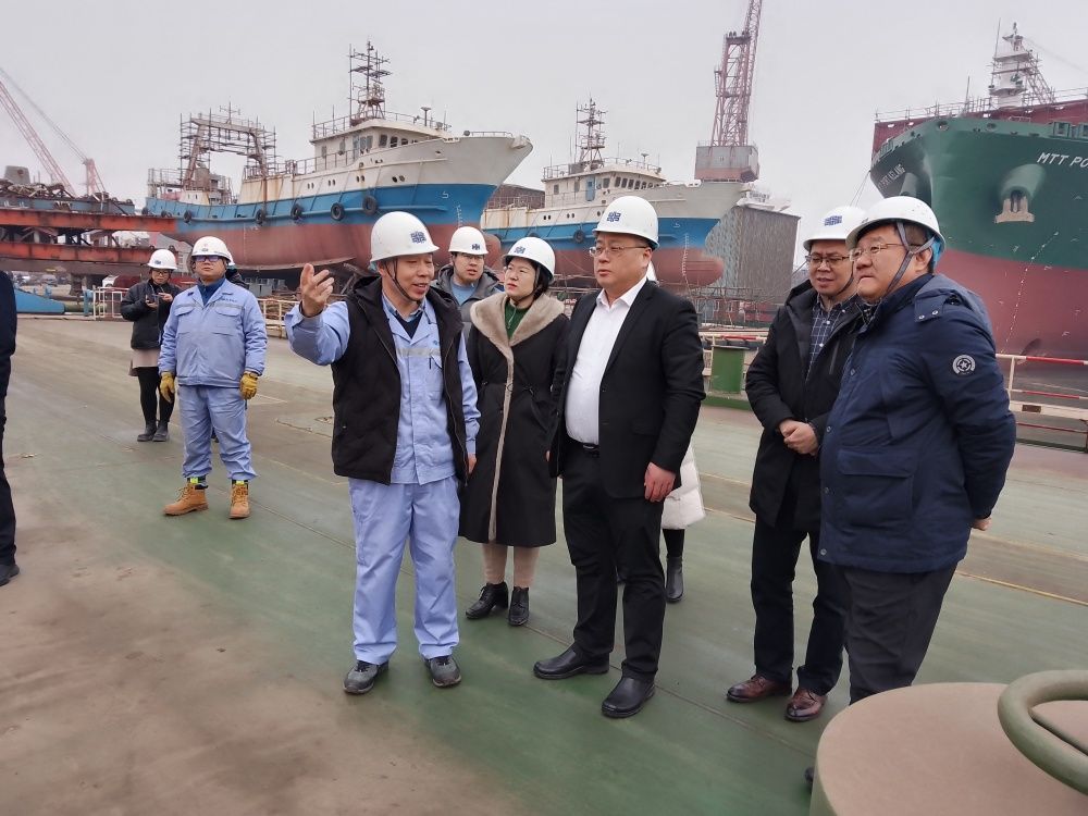 座谈会前,黄加栋一行在副区长宋丽红等陪同下先后到蓬莱中柏京鲁船业有限公司、蓬莱嘉信染料化工股份有限公司进行了实地考察交流。