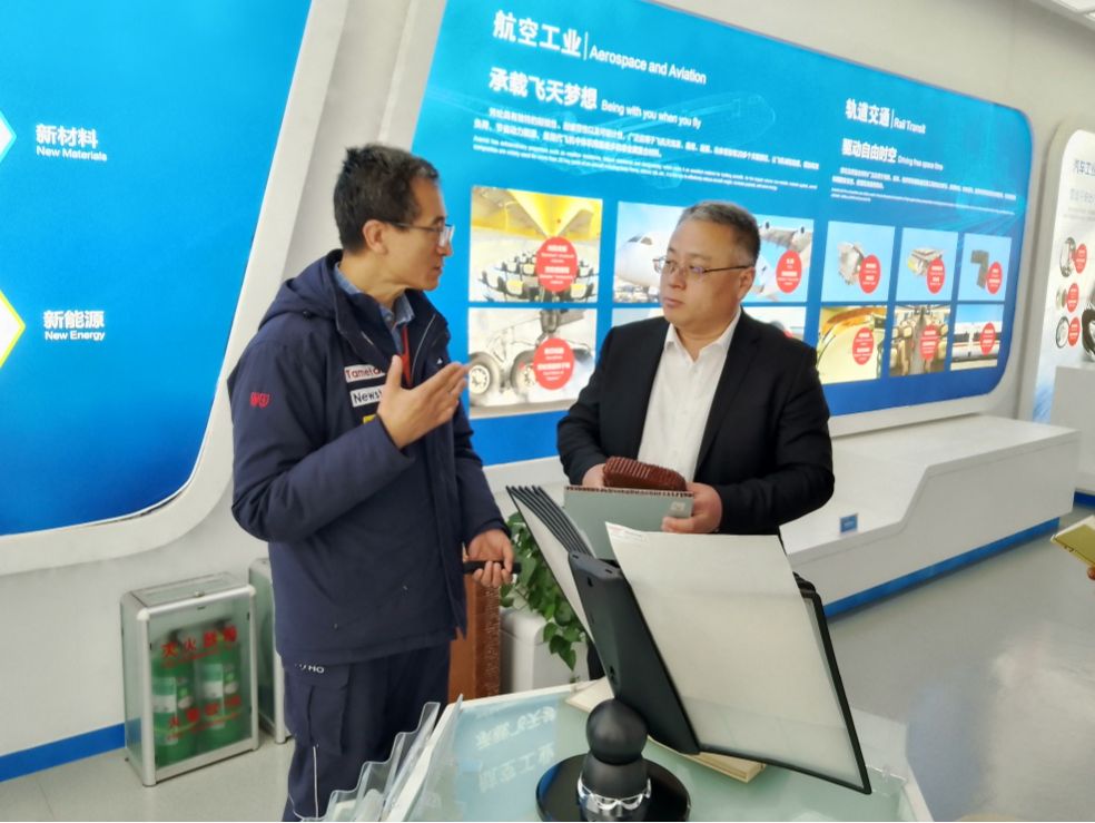 座谈会后,黄加栋一行到烟台泰和新材料股份有限公司和北方材料科学与工程研究院有限公司进行了实地考察交流。