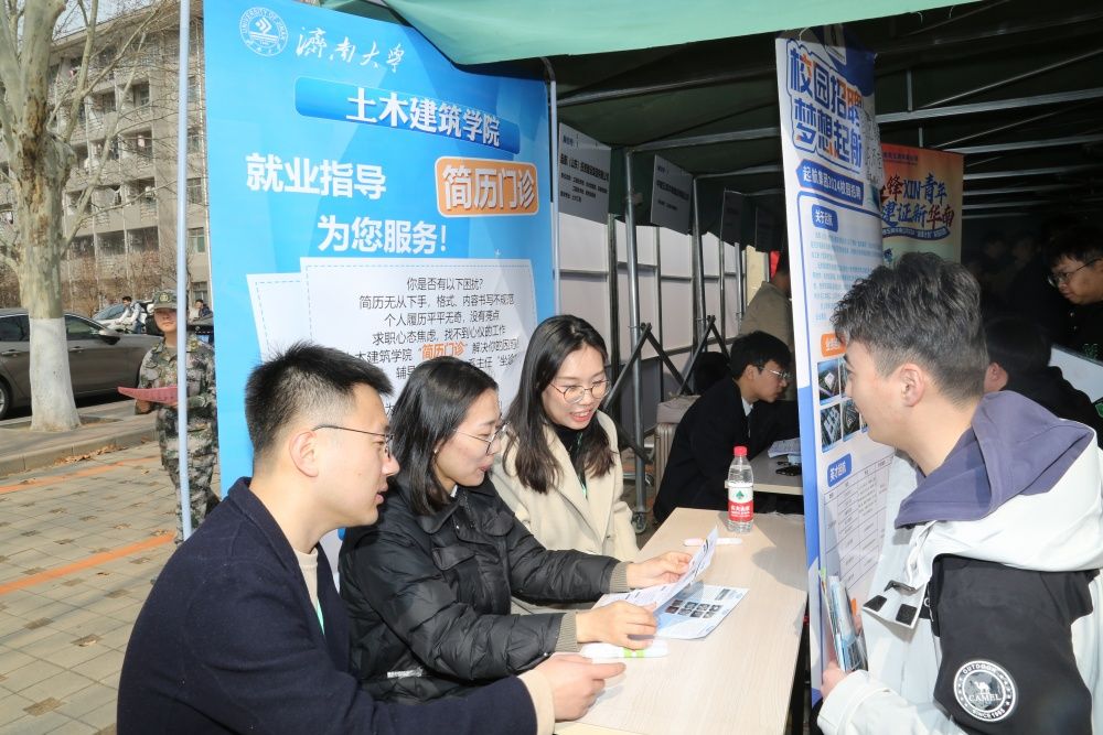 为进一步推动2024届毕业生实现高质量就业,土木建筑学院、水利与环境学院于3月13日联合举办了“就选济大”“青鸟计划”2024年春季专场招聘会。校长刘宗明在招聘会现场与用人单位、毕业生进行了深入交流。党委学生工作部(处)、党委保卫部、团委、土木建筑学院、水利与环境学院等相关部门、单位负责人参加了招聘会。