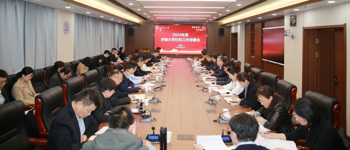 3月14日下午,学校召开2024年度社科工作部署会,学校党委副书记查玉喜出席会议并讲话,各文科学院党委书记、院长、分管科研工作副院长,独立科研平台负责人,社科处全体成员参加会议。