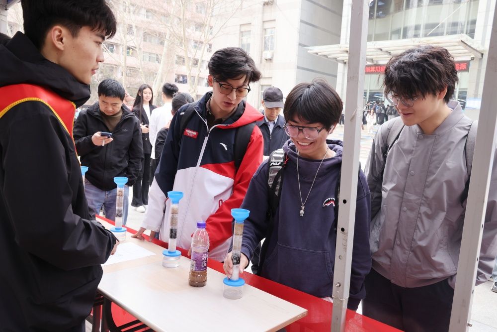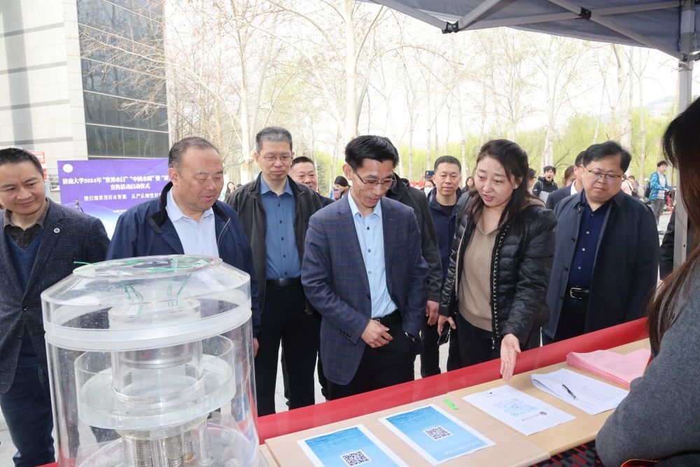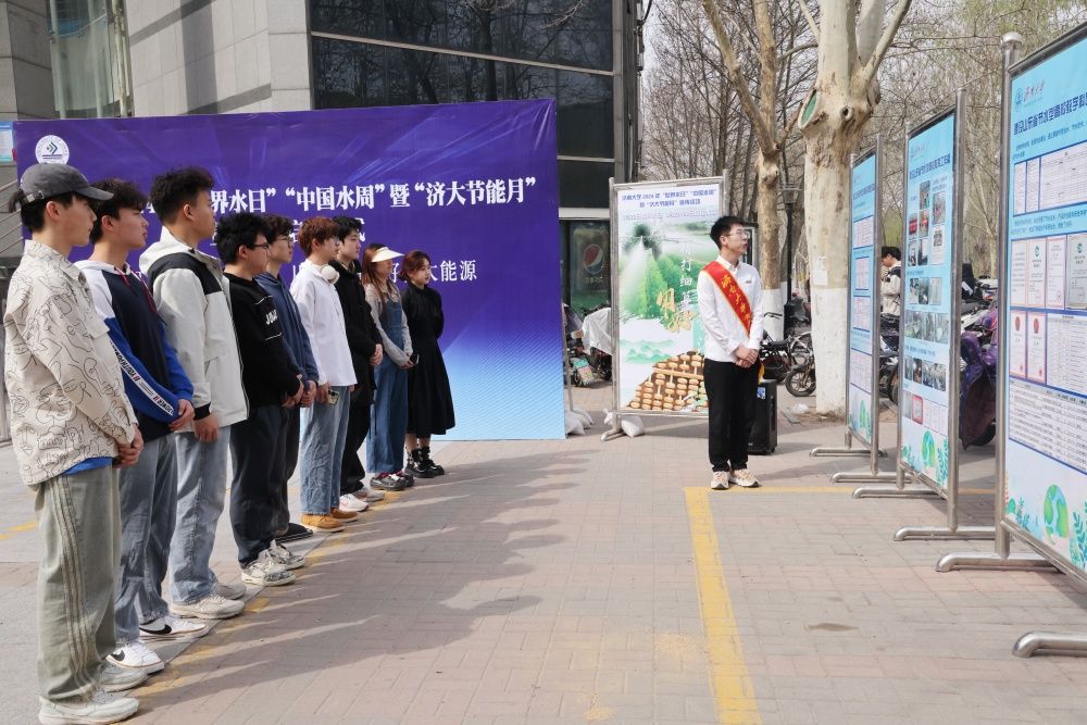 活动现场搭建了宣传长廊,围绕“精打细算用好水资源,从严从细管好水资源”主题,通过悬挂宣传横幅、摆放宣传展板、“让‘节水’点亮济大地标”有奖打卡、“水文小课堂”面对面讲解、水文体验等形式向广大师生宣传节水护水知识,进行自制净水装置体验。李强现场与师生互动,呼吁大家从自身做起、从点滴做起,养成合理用水的良好习惯,用实际行动自觉节约用水、合理用水,营造全校节约用水良好氛围。水利与环境学院常务副院长王仲鹏现场接受了山东教育电视台采访,表示要从总体国家安全观的高度保障水安全,加快发展水利新质生产力,适应经济社会发展新要求,通过科技创新,统筹解决好水资源、水生态、水环境、水灾害问题,真正做到水惠民生。