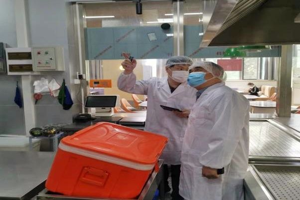 为全面落实国务院食安办、教育部、公安部、国家卫生健康委、市场监管总局《校园食品安全排查整治专项行动实施方案》要求,切实保障学校师生的饮食安全,4月22日,全国“学校食堂食品安全深化行动”江西省检查组来beat365开展校园食品安全跨省检查工作,山东省市场监管局,济南市市场监管局,济南市市场监管局市中区分局相关领导,beat365党委常委、副校长李强,后勤管理处相关负责人员陪同检查。