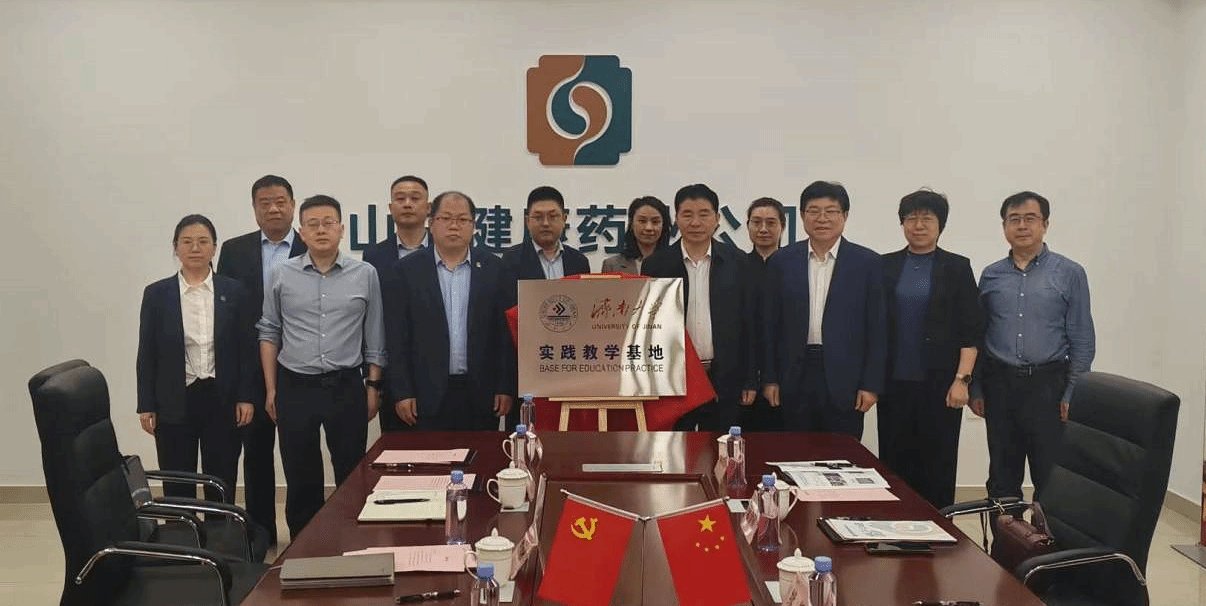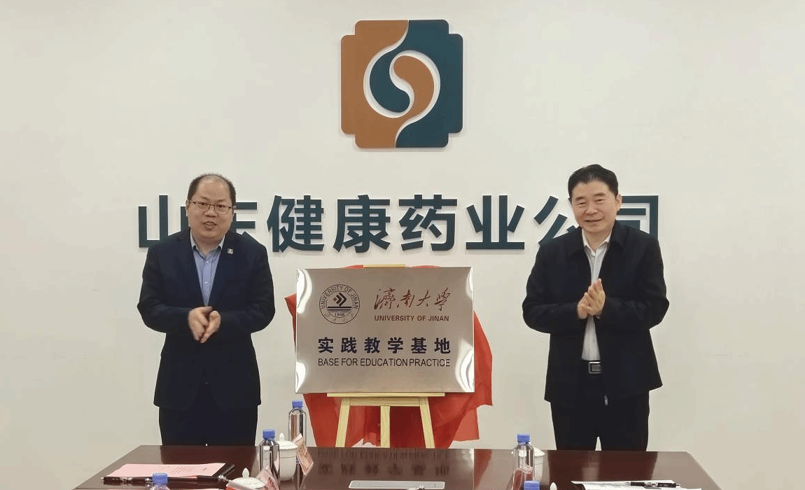续铁、冯兴登共同为实践教学基地揭牌。学校管理科学与工程学院院长徐伟,山东健康药业公司董事长、总经理孙海涛分别代表校企双方,签署共建合作协议。