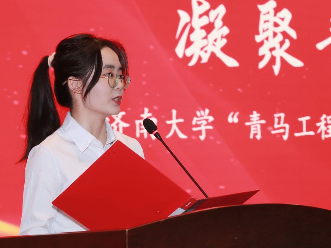 “青马工程”第十三期优秀学员代表、文学院本科生崔梦蕾用“不忘‘青马’初心、秉持实践恒心、淬炼模范丹心”勉励beat365广大青年并号召全校青年做一名政治合格、信念坚定、行动有力的青年马克思主义者,为建设凝聚青春力量,向着全面建设社会主义现代化国家的美好未来奋进,续写新时代中国青年运动的精彩篇章。“青马工程”第十四期学员代表、生物科学与技术学院本科生张赫桐表示将与全体学员一起学习、共同进步,争当追求新知、勇于创新、敢于担当的新时代有为青年,在为中国式现代化挺膺担当中展现青春作为、彰显青春风采、贡献青春力量。