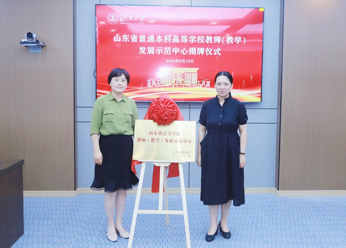 刘依林副处长与商华副校长共同为山东省普通本科高等学校教师(教学)发展示范中心揭牌。