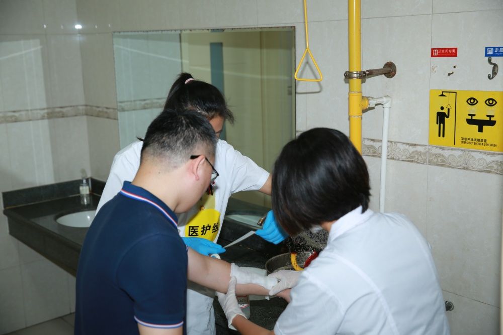 本次应急演练主要模拟实验过程中因意外发生氢氟酸泄漏,出现人员受伤情景下的应急处置过程,包括事故报警、人员疏散、医疗救护、现场抢险、舆情发布等实验室安全事故应急涉及的全要素。本次演练以“实战+观摩”的形式,由实验室人员实施实战演练,其他师生以视频直播的方式进行观摩,达到了检验和示范的双重目标,增强了参与人员的安全防护意识,提高了参演和观摩人员的风险防范意识和自救互救能力。