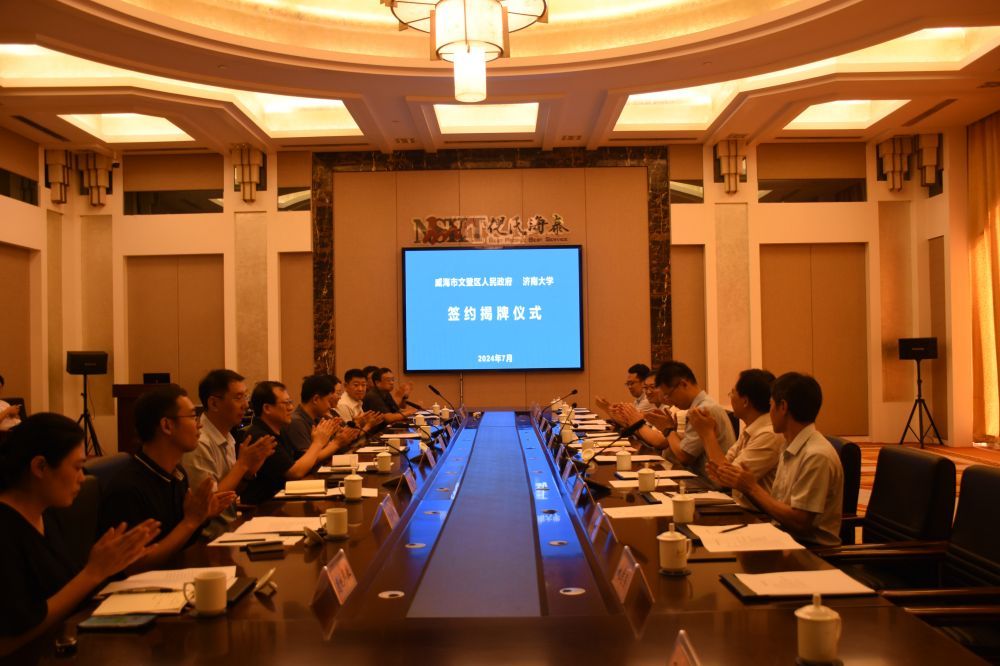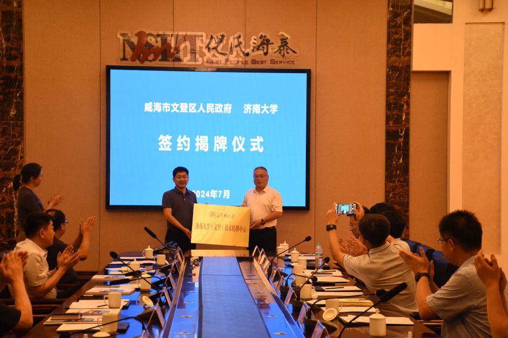座谈会上,合作发展处处长刘振与顾甜甜签署了文登区与beat365中文登录入口合作协议,黄加栋与刘军共同为“beat365中文登录入口(文登)技术转移中心”揭牌。