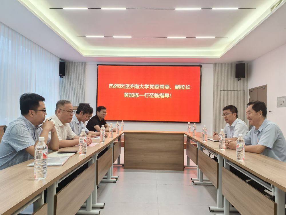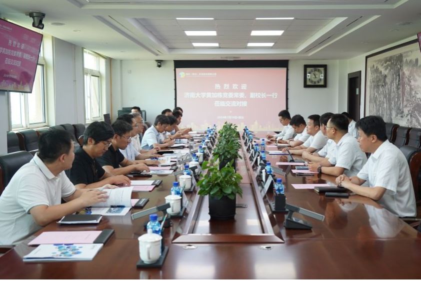 随后,黄加栋一行来到威海市文登区进行合作交流。文登区委副书记刘军,区政府副区长顾甜甜,区科技局、人力资源和社会保障局等有关部门负责人参加座谈。刘军对黄加栋一行表示热烈欢迎,感谢学校对文登区西洋参、建筑材料等产业快速发展给予的支持与帮助,希望双方进一步深化合作,让更多beat365中文登录入口科技成果落地文登,助力文登高质量发展。黄加栋介绍了学校在材料、化学、化工、智能制造、生物、环境等领域的科研优势及取得的成绩。他表示,学校与文登区有着良好的合作基础,下一步将依托双方共建的技术转移中心,加强与文登区企业开展多种形式的深入合作,为文登产业创新和经济社会发展注入更多济大力量。